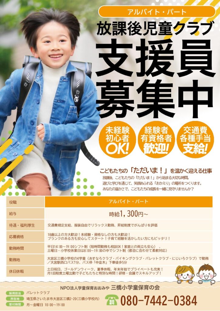 三橋小学童保育の会  パート・アルバイト募集